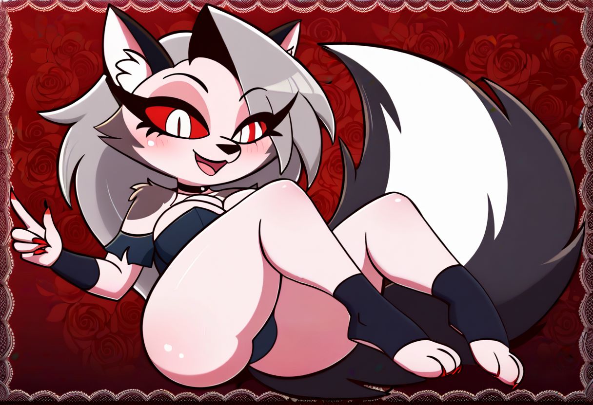 score_9, score_8_up, score_7_up, score_6_up, score_5_up, score_4_up, best quality, 1girl, 2boy, anatomically correct, detailed background, complex shadows, highly detailed hands, highly detailed feet, highly detailed legs, intricate details, perfect body, highly detailed body, highly detailed fur, high detail, detailed eyes, perfect hands, detailed face, beautiful face, masterpiece, best quality, high resolution, realistic fur, big breasts, big ass, naughty face, thicc, loonas, hellhound, furry, helluva boss, chibi