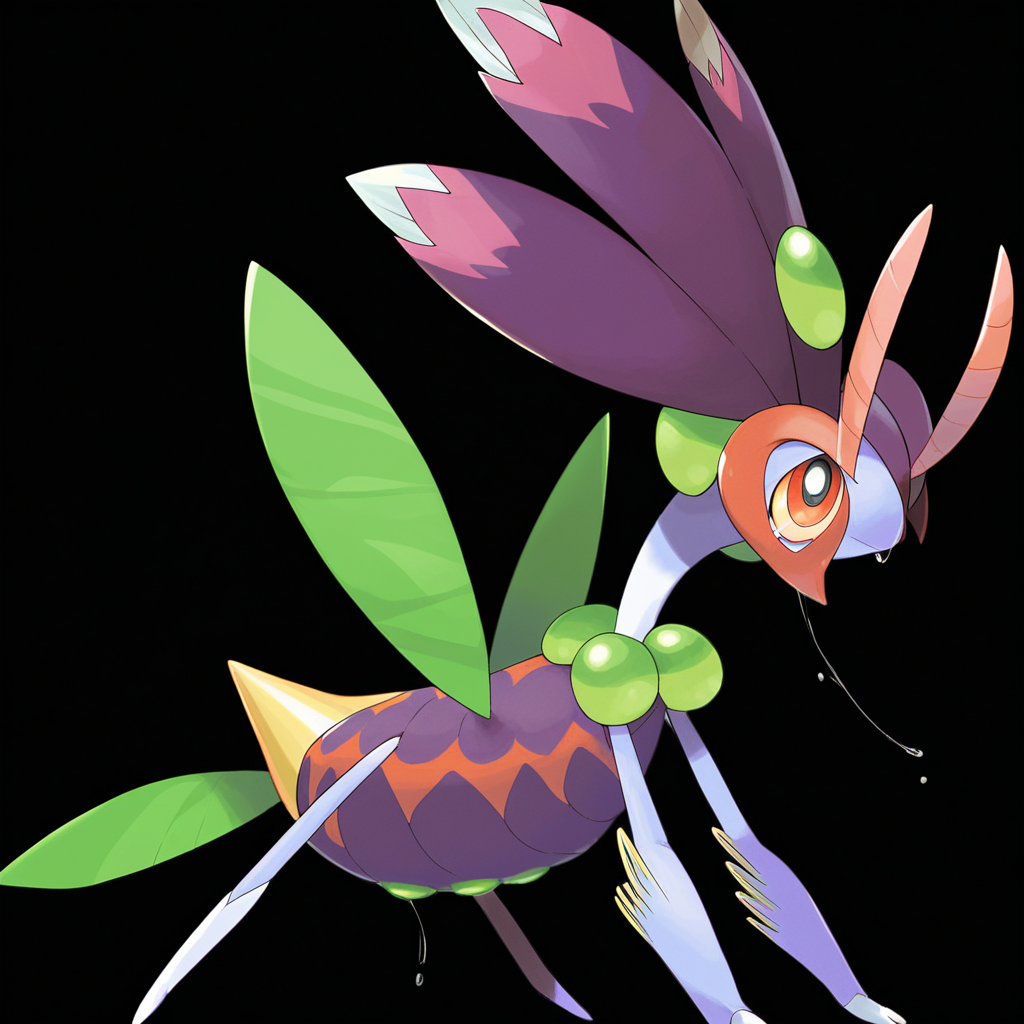 <lora:pokemon_pony_xl:0.6>, Type: Electric, Type: Bug Egg Group: Bug Eyes that glow faintly in the dark, revealing hidden depths of wisdom and untold secrets,The monster's saliva can solidify into Maroon strands, which it uses to build nests or trap prey.,A dance that stirs the air, creating patterns of light and shadow that tell ancient tales,Its wingtips are adorned with Purple feathers that produce a melodic sound when in flight,Its paws leave yellow (orange:0.8) prints that glow in the dark, leading the lost back to safety,Its skin can change texture to mimic its surroundings, providing camouflage,Each of the creature's hairs is tipped with a microscopic Magenta barb, providing defense against small attackers,Its tears turn into Green pearls upon touching the ground a rare and precious byproduct of its sorrow,It can clap its hands creating a Green shockwave that stuns prey and predators alike,The animal's stride is graceful, each step a testament to its noble heritage and untamed spirit, score_9, score_8_up, score_7_up, score_6_up, score_5_up, score_4_up. Simple black background, (Masterpiece:1.3) (best quality:1.2) (high quality:1.1)