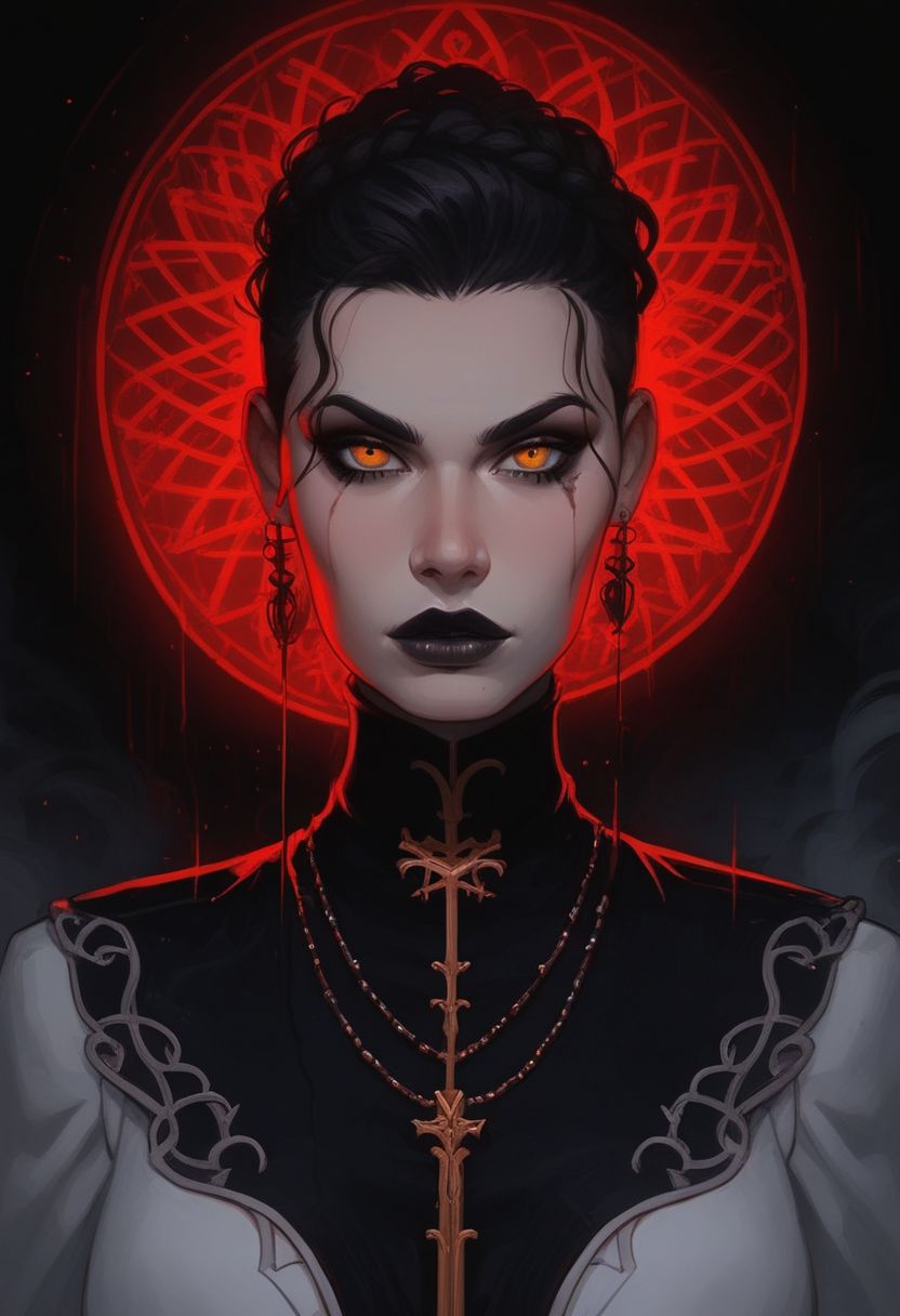 The stunning vampire ashe overwatch possesses an ethereal beauty, her alabaster skin exuding an otherworldly allure. Amidst the purity of her complexion, intricate patterns of colored skin emerge, blending seamlessly with the paleness to create an enigmatic visage. Across one of her mesmerizing eyes, a scar traces a tale of battles past, adding a hint of danger to her enchanting gaze. Adorning her face is a striking black tattoo, reminiscent of ancient symbols, its stark contrast against her fair skin drawing attention to her mysterious aura. Cascading down her back, her hair, a stunning shade of white, is styled in an undercut, the remaining locks intricately braided, a testament to her fierce and meticulous nature. Draped in sith bodysuit armor, she moves with the grace of a predator, each movement commanding attention and respect. The armor, a fusion of sleek grey plating and multicolored accents, reflects her multifaceted personality and the complexity of her character. Her piercing orange eyes, like flickering flames amidst a sea of snow, hold the promise of power and darkness, mirroring the depths of her soul. In her hand, she wields a menacing red lightsaber, its crimson glow illuminating the shadows that dance around her. Amidst the ancient ruins of a sith temple, she stands as a formidable presence