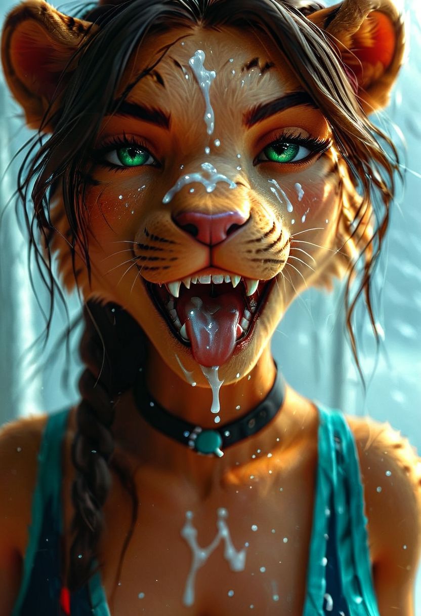 score_9, score_8_up, score_7_up, score_7, score_6_up, solo, 1girl, pretty 18 year old girl, black hair, ponytail braid, big green eyes, anthro, mammal, female, felid, pantherine, clothing, solo, breasts, hair, cum, tiger, countershading, clothed, blush, tongue, fur, fangs, teeth, bodily fluids, hi res, open mouth, genital fluids, cum on face, green eyes, alex marx, high-angle view, brown hair, big breasts, digital media (artwork), video games, absurd res, after sex, Ultra Realistic, cartoon, 3D, coy smile, flowery dress, (perfect breasts), photo, detailed, sharp focus, sweet, innocent, flirtatious, seductive, DV_Manuela_Vicious, (show small cleavage, flat chest), choker, skinny girl with perfect body and tan skin, cute, pleasant, seductive, freckles, 85 mm, dark room, outdoor, rare angle selfie, sunburst, backrooms