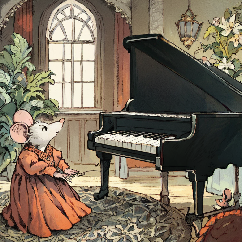 score_9, score_8_up, score_7_up, mouse, wearing a dress, indoors, 1girl, piano, by arnold lobel <lora:LobelForPony:1>