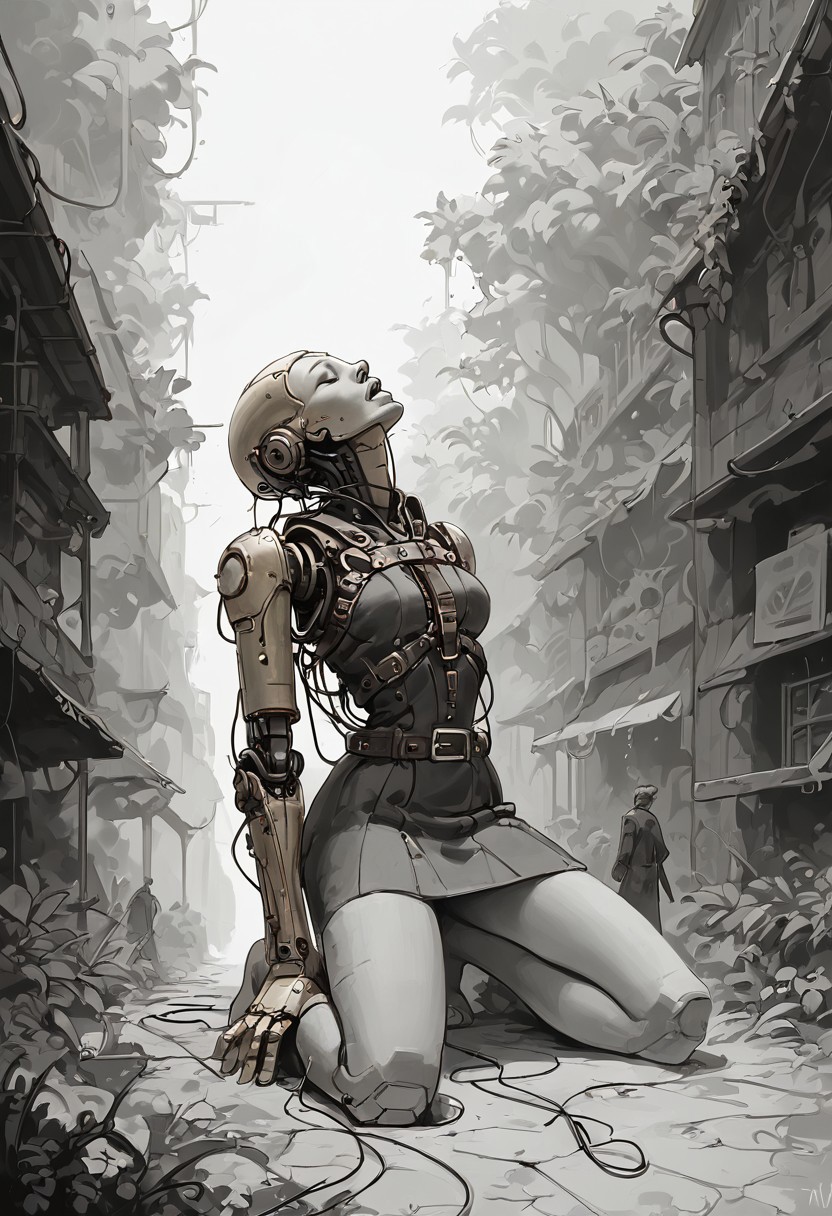 score_9, 18 years old girl, Expressiveh, aroused, cable, wires, reelmech and mechanical parts, skirt, bending down, wide shot, public indecency, display ass, (vibrant colors), vore, big city street, spread ankles, leans on the knee, long legs, LineAniAF, lineart, (sex), orgasm face, g0thicPXL, prosthetic_harness, joints, wood_prosthetic, prosthetic_arms, mechanical arms,