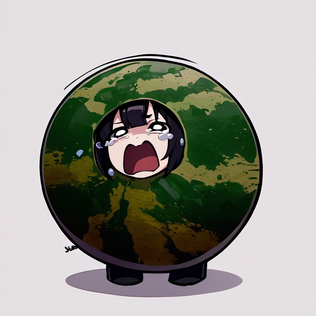 score_9, score_8_up, source_anime, Watamelon, no humans, creature, chibi, watermelon, all fours, crying, aquascreaming, screaming, open mouth, crying with eyes open, 1boy, justtnp, black hair, heterochromia, black eyes, white eyes, <lora:ChamWatamelonPonyXL:1>, <lora:oc_justtnp_ponyXL:1.2>, <lora:concept_aquascreaming_ponyXL:0.8>