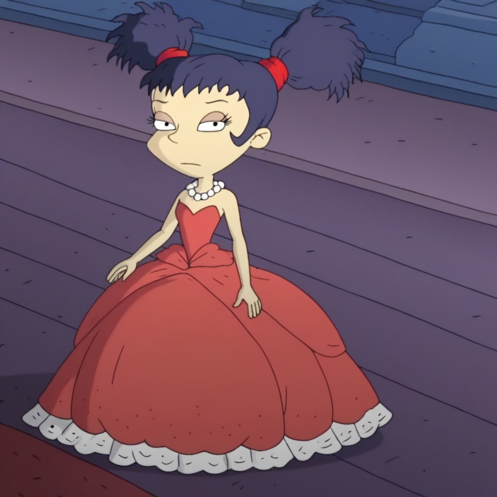 1girl, solo, kimi_finster, black hair, twin tails,, Very long large floor length wide straight tulle black and red long sleeved princess ball gown hoop skirt, ball gown hoop skirt, black and red princess dress, white pearl necklace, hoopdress, my big princess gypsy wedding dress, ballgown, a girl in a dress posing like a princess for a picture, wearing a sleeveless ballgown, looking at viewer, half closed eyes, closed mouth, she is posing like a goth girl, she is walking like a quinceanera model