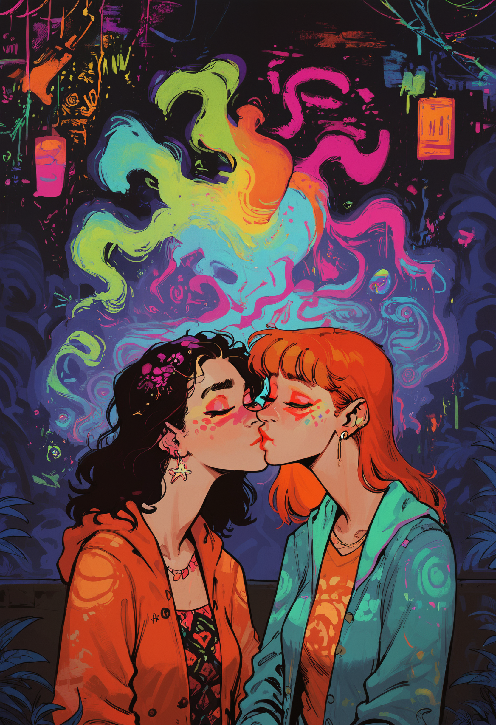 score_9, score_8_up, score_7_up, 2girls closed mouth kissing, colourful, green, orange, black, purple, neon, s, trippy, <lora:f3nn3rXLP:0.7> f3nn3r <lora:incase_v14:0.1> <lora:Concept Art Ultimatum Style LoRA_Pony XL v6:0.8>