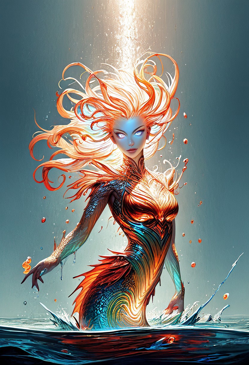 (score_9, score_8_up), score_7_up, zPDXL, solo, <lora:MythAnim3Style:0.8>, MythAn1m3, source_anime, 1girl, mermaid, dark mysterious backgroud, Iridescent eyes, aquatic scene, dreamlike atmosphere, mystical, ethereal light, detailed textures, whimsical, rippling, dripping, water element, very long cascading hair, water, very beautiful, sexy, sexy body, beautiful body, scales, wet body, Iridescent scales, bubbles, water drops, Iridescent skin, multi colored eyes, partially underwater shot, watce, bioluminescent skin, bioluminescent, glowing, bioluminescent scales, bioluminescent hair, FastNegativeV2, laser light clothes, submerged breast, water line on lense, view from under water, light hair