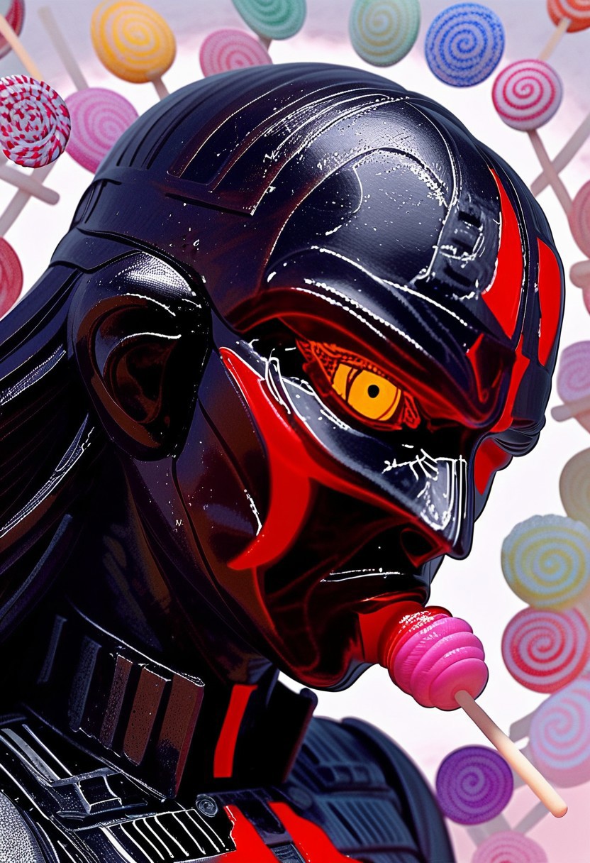 score_9, score_8_up, score_7_up, score_6_up, detailed, (tack sharp, sharp focus, (face focus, eye focus), raw, BREAK, resin_cast, ((Darth Vader in multi colored uniform made of different candy, holding giant multi colored Lollipop, detailed multi colored village made from candy as background, everything is made out of candy, candy everywhere, candy)), dynamic dramatic angles, dynamic detailed background,