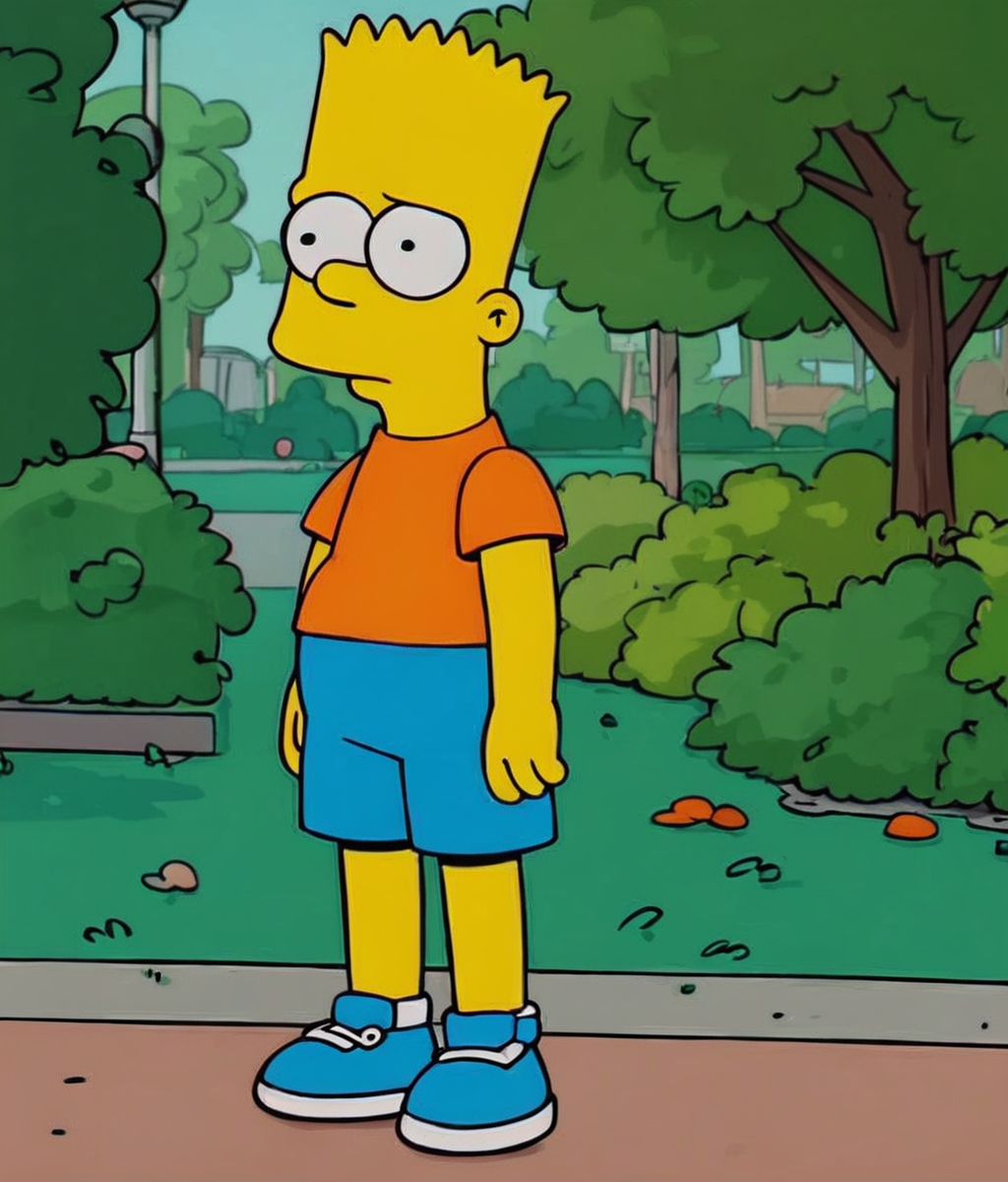 score_9, score_8_up, score_7_up, <lora:Bart9:0.8>, 1boy, solo, bart simpson, young bart, orange shirt, blue shorts, blonde hair, black eyes, standing, shoes, park, other hairstyle,smooth lines, countershading, soft shading, 2d, extreme detail, 4K, high definition, high resolution