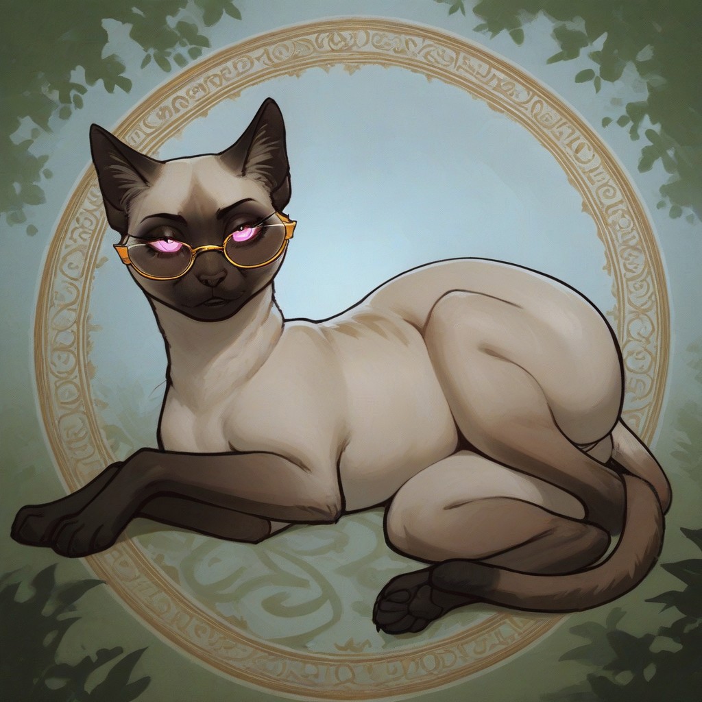 score_9, score_8_up, score_7_up, rating_explicit, feral NSFW, feline, solo, BREAK, female siamese, (((gold rimmed circle glasses with pitch blank tint))), smooth body, beige fur with brown stripes, black eyeshadow, four legs, black lips, voluptuous feral body, detailed background, wide hips, thick thighs, plump plush body, attractive, sultry, life size body, white stockings, black harness, busty feral XL, huge butt, laying down on side, hot pink tail, glowing pink eyes, blank bored expression, BREAK, Luscious heavenly garden, beautiful plants, golden waterfall, cloud level, gold gate, of rays, tilted angle, front view high angle,
