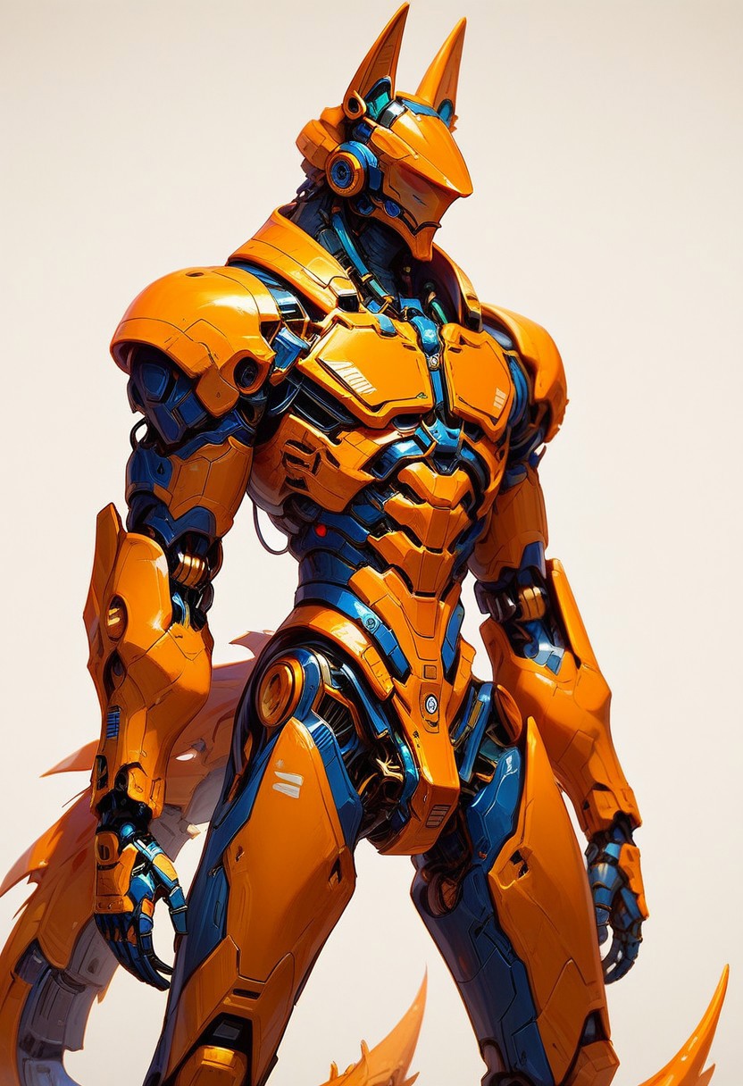 score_9, score_8_up, score_7_up, best quality, mcnm, robot man, solo, black visor, wolf-ear-parts, Streamlined body, green and gold Egyptian ninja suit, mechanical wolf tail, standing, legs apart, simple background, jollyjack style