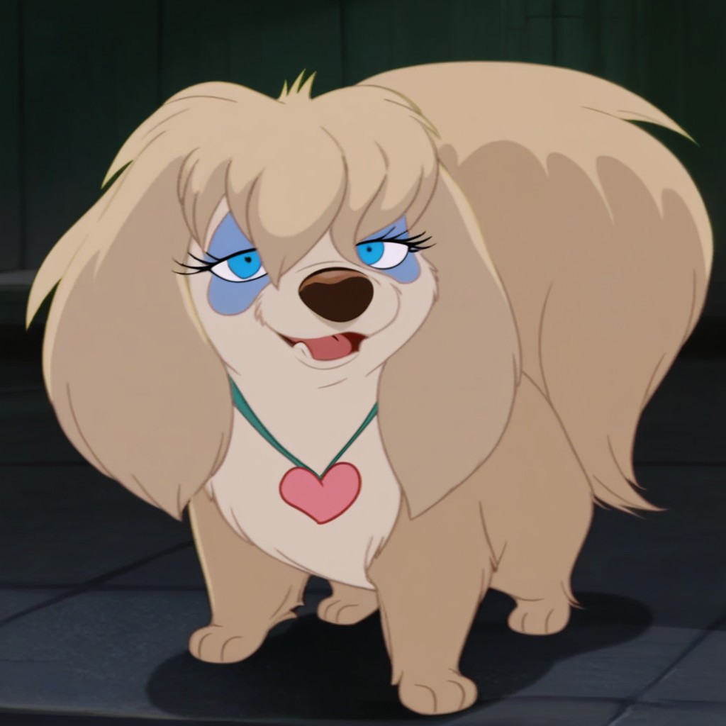 PegLTT, furry, feral, canine, tan body, tan fur, tan hair, light-blue eyeshadow, blue eyes, black pupils, brown nose, hair over one eye, tail, hair over eyes, (((front view))), (((looking at viewer))), (smug), (((eyelashes))), (((no neckwear except pink heart necklace))), tough, solo, happy, smiling, flirty, feral, no background, quadruped, (((standing))), four paws, (((full body view))), standing confidently, (((smirk))), sneer, (((half-open eyes))), (((open mouth))), sassy, head held high. solo, one tail